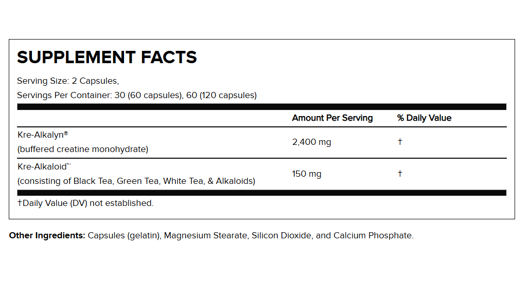 Kre-Alkalyn PRO не е обикновен креатин — това е креатинова формула от следващо ниво с коригирано pH, тествана и създадена за силови спортисти. С 2400 mg креатин с оптимизирано pH на порция плюс енергийна матрица „Kre-Alkaloid“, той е разработен, за да ви помогне да преодолеете границите си, да изградите сила и да доминирате в тренировките си .